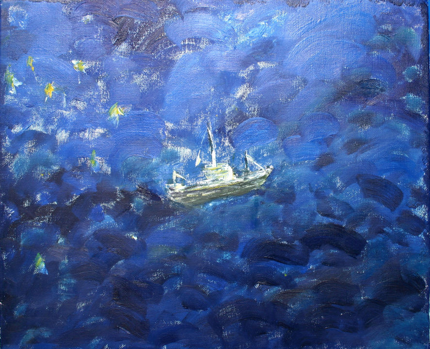 HUILES SUR TOILES (format env. 40 x50cm) transcription picturale des 25 strophes du poème «Le Bateau ivre» d'Arthur Rimbaud, Peintures entre 1990 et 2011, à Cavalaire.